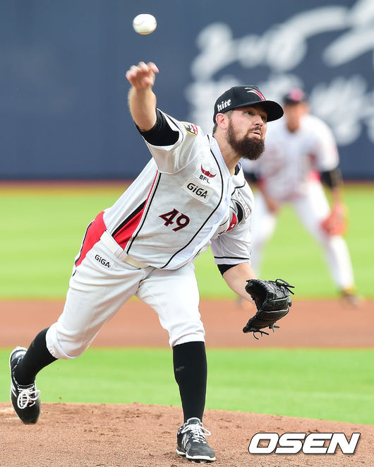 로위는 24일 수원 kt위즈파크에서 열린 삼성과의 경기서 선발 등판해 5이닝 4피안타 3볼넷 5탈삼진 1실점으로 첫 승을 달성했다.