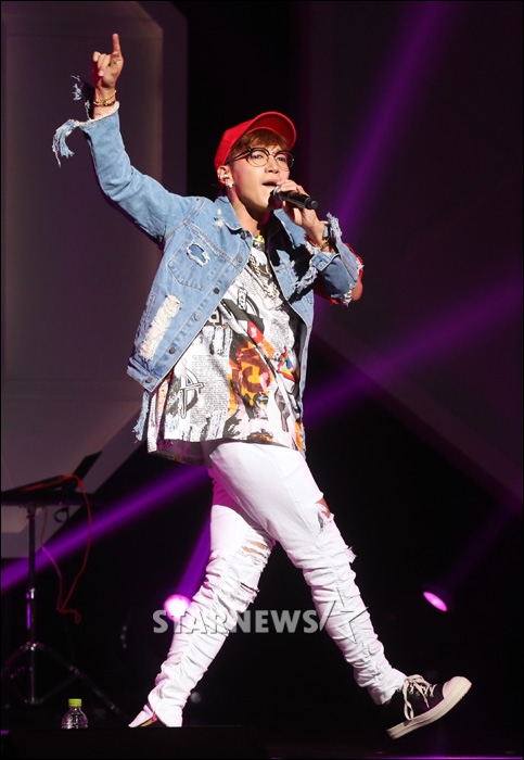 2PM 준케이(JUN.K)가 8일 오후 서울 광진구 광장동 예스24 라이브홀에서 열린 첫 솔로 미니앨범 'Mr. NO♡' 쇼케이스에서 공연을 펼치고 있다.