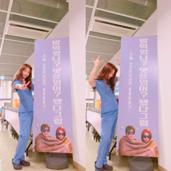 사진 속 박신혜는 이홍기가 보낸 밥차 현수막 앞에 서서 수술복 차림으로 고마움을 드러내고 있다. 3일 밤샘 촬영을 했음에도 불구하고 여전한 미모를 과시하며 눈길을 끌었다. 또 이들의 우정에 보는 이들을 흐뭇하게 했다.
