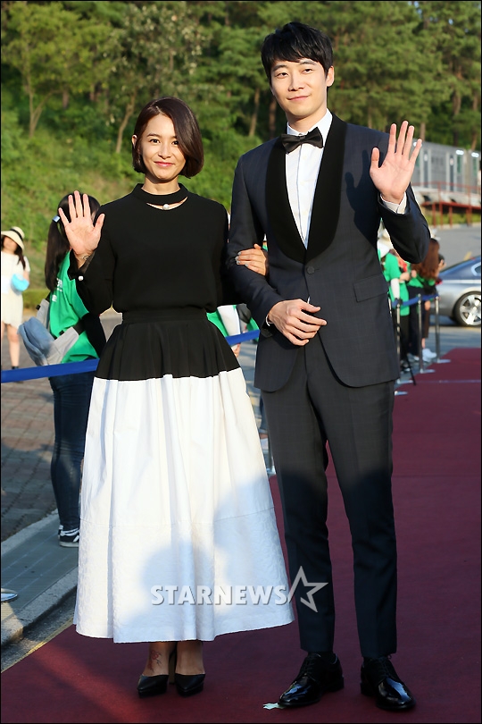 배우 강혜정과 피아니스트 윤한이 11일 오후 충북 제천시 청풍호반 특별무대에서 열린 '제12회 제천국제음악영화제' 개막식에 참석해 레드카펫을 밟고 입장하고 있다.