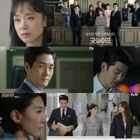 ‘굿와이프’는 승승장구하던 검사 남편 이태준(유지태 분)이 스캔들과 부정부패 의혹으로 구속되고, 결혼 이후 일을 그만뒀던 아내 김혜경(전도연 분)이 가정의 생계를 위해 서중원(윤계상 분)의 로펌 소속 변호사로 복귀하면서 자신의 정체성을 찾아가는 법정 수사극.