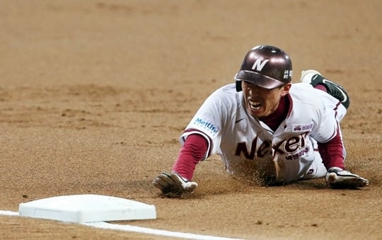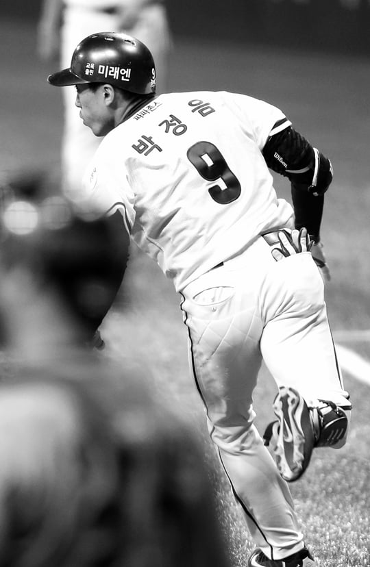 1루 주자 박정음은 한 베이스라도 더 가기 위해 전력 질주를 하기 시작했다. '한 베이스 덜 주고, 한 베이스 더 가기'. 올 시즌 넥센의 모토다. 이를 악물고 뛰는 박정음. 그런데 2루를 돌던 순간 왼발을 접질렸다. 하지만 멈출 수는 없었다. 고통을 참은 채 3루까지 뛰고 또 뛰었다. 그의 트레이드 마크인 '전력 질주'였다.