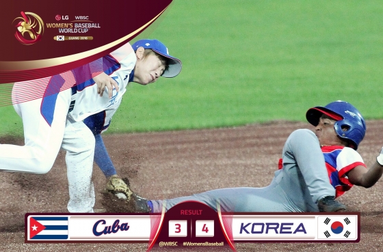 한국 여자야구 대표팀이 쿠바에 극적인 역전승을 거뒀다.