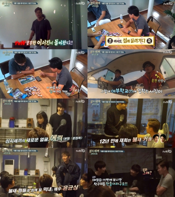 '삼시세끼'에 새롭게 합류한 에릭은 취미가 낚시로 알려져 있어 이번 '어촌편3'에 딱 맞는 멤버다. 영상에서 에릭은 드라마 '불새' 이후 12년만에 재회한 이서진을 보고 함박웃음을 지으며 반가워하는 모습으로 이서진과의 최강호흡을 예고했다.