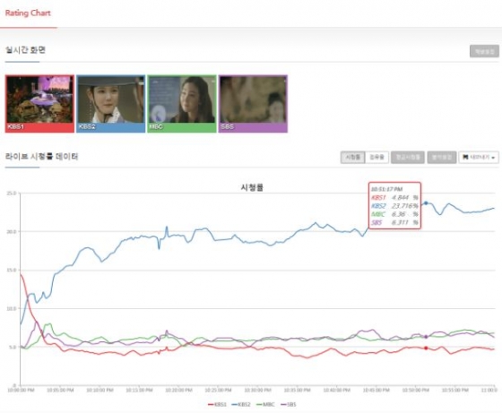 KBS 2TV 월화드라마 '구르미 그린 달빛'이 20%가 넘는 리얼타임 시청률을 기록했다.