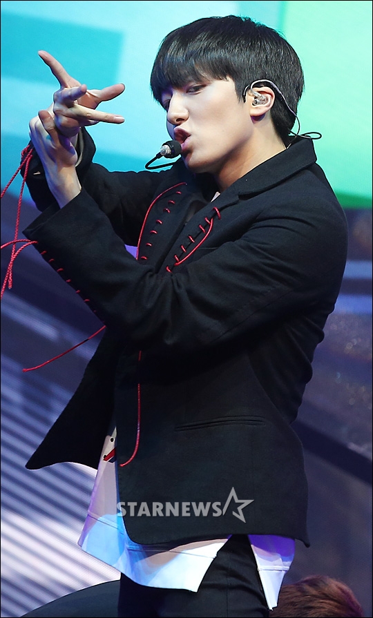 그룹 SF9(에스에프나인) 찬희가 5일 오후 서울 광진구 광장동 예스24라이브홀에서 열린 데뷔 싱글 '필링 센세이션(Feeling Sensation)' 쇼케이스에서 멋진 공연을 선보이고 있다.