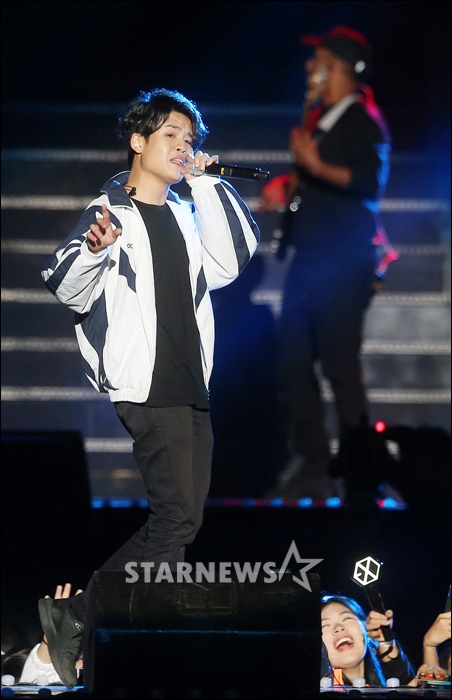 싱가폴 가수 젠틀본스가 127 이 9일 오후 부산광역시 연제구 거제동 부산아시아드주경기장에서 열린 '2016 아시아송페스티벌'(ASIA SONG FESTIVAL)에서 멋진 무대를 펼치고 있다.