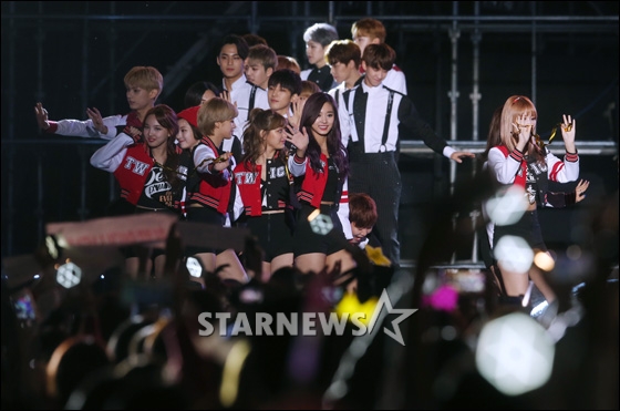 그룹 트와이스, 세븐틴이 9일 오후 부산광역시 연제구 거제동 부산아시아드주경기장에서 열린 '2016 아시아송페스티벌'(ASIA SONG FESTIVAL)에서 인사를 하고 있다.