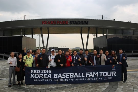 팸투어에 참가한 중국 성 및 시의 야구협회, 스포츠산업, 미디어 및 관광 관계자 21명은 28일 고척 스카이돔 투어로 공식일정을 시작하여 넥센 히어로즈와의 마케팅 간담회, 이천 베어스파크 구단 훈련 시설 견학 및 NC와 두산의 한국시리즈 1차전 경기를 관람하는 등 KBO 리그의 다양한 프로그램 경험했다.