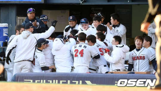 두산 베어스는 30일 오후 2시 서울 잠실구장에서 열린 NC 다이노스와의 '2016 포스트시즌' 한국시리즈 2차전에서 장원준의 8⅔이닝 1실점 역투를 앞세워 5-1로 승리했다.