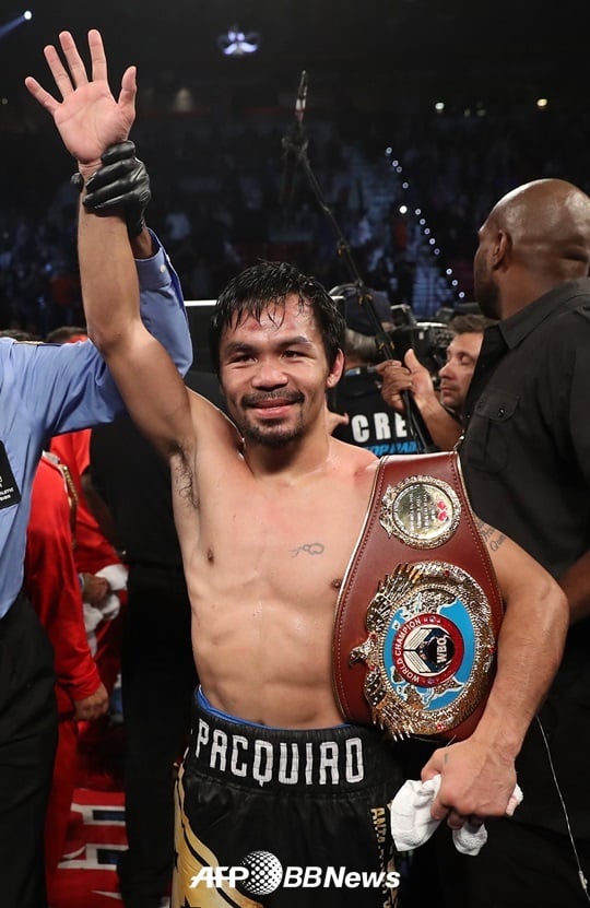 필리핀의 '국민 영웅' 매니 파퀴아오(38)가 복귀전에서 완승을 거두며 챔피언 벨트를 거머쥐었다.