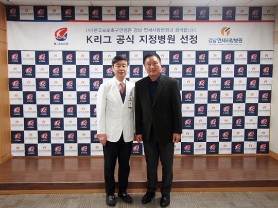 한국프로축구연맹(총재 권오갑, 이하 '연맹')과 보건복지부 인증 의료기관 강남 연세사랑병원(병원장 고용곤)이 23일 오전 서울 서초구 방배동에 위치한 강남 연세사랑병원 신관 대강당에서 K리그 공식 지정병원 업무 협약을 체결했다.