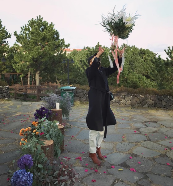 김나영은 29일 오후 자신의 SNS에 "어머, 나 또 시집 가야 하나봐. 부케 받으면 가야하는 거 맞죠? 여보, 미안! 그렇게 됐어"라는 재치있는 메시지와 함께 사진 한 장을 게재했다.