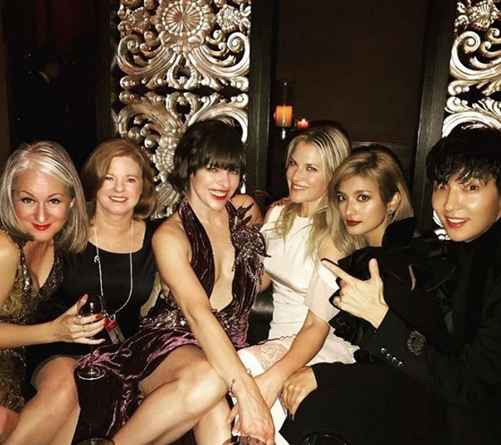 사진 속 이준기는 5명의 여성들과 함께 있다. 여성들 중 가운데 있는 이는 모델 출신의 우크라이나 배우 밀라 요보비치. 흑발의 밀라 요보비치는 보랏빛의 드레스를 입고 세련된 매력을 뽐내 눈길을 끌었다.