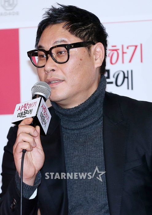 주지홍 감독이 19일 오후 서울 광진구 롯데시네마 건대입구에서 진행된 영화 '사랑하기 때문에(감독 주지홍)' 언론시사회 및 기자간담회에 참석해 인사말을 하고 있다.