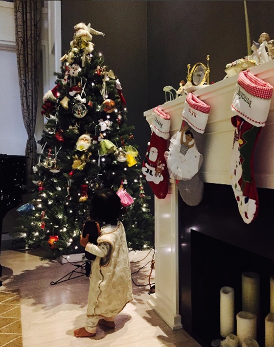 사진 속에는 지성과 그의 아내 이보영, 딸 지유의 크리스마스 트리가 보인다. 거실의 벽난로에는 각자 이름이 수놓아진 양말이 걸려있다. 지성의 딸 지유는 크리스마스 트리를 쳐다보고 있다.