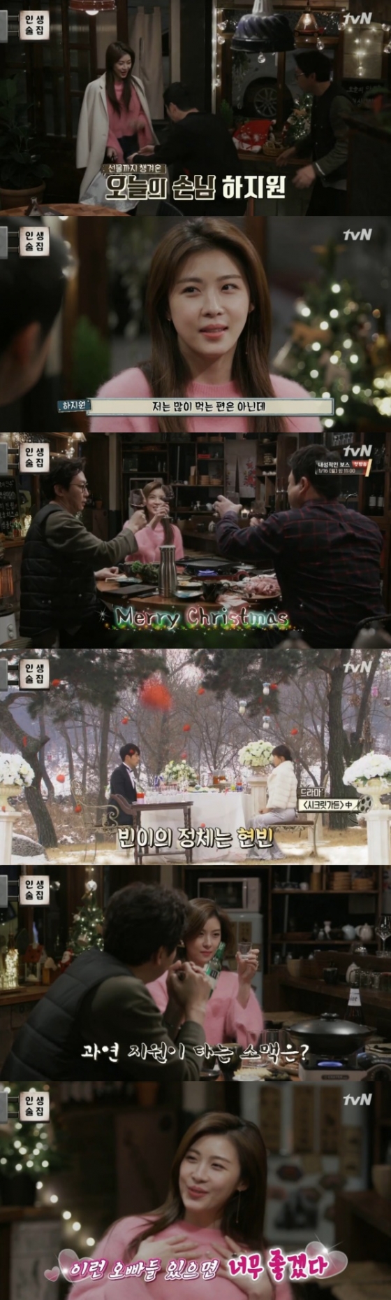 '인생술집'에 크리스마스를 기념해 국민 여배우 하지원이 등장했다.