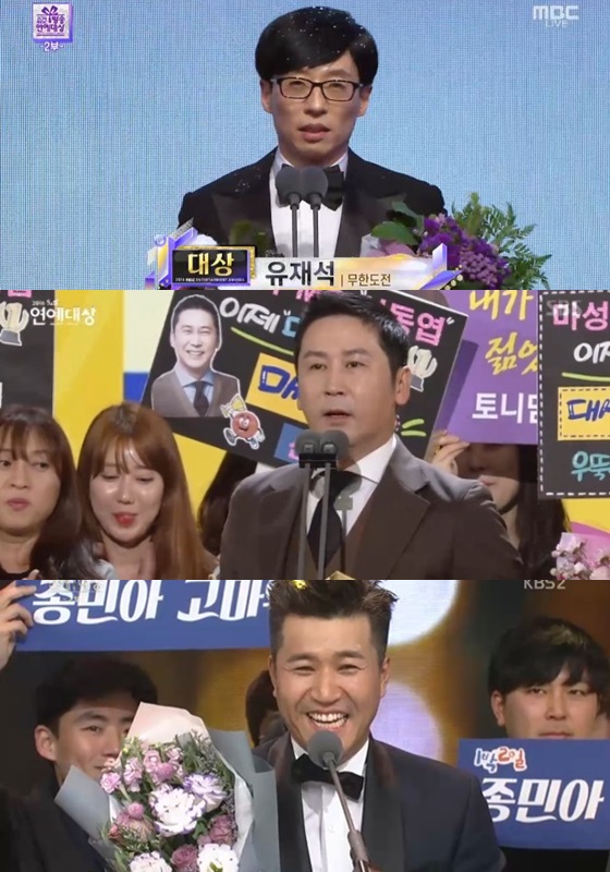 올해 방송 3사 연예대상 대상 수상자들은 오랜 시간 해당 방송사 프로그램에서 활동하며 공헌한 이들에게 돌아갔다는 공통점이 있다.