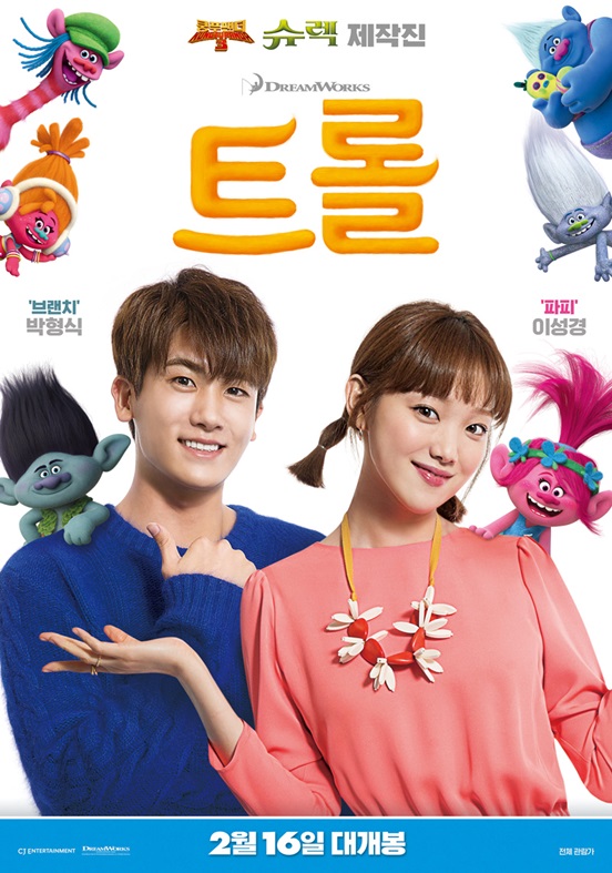 '트롤;은 행복이 넘치는 트롤 왕국의 긍정공주 파피와 걱정병 친구 브랜치가 우울종결자 버겐들에게 납치된 친구들을 구하기 위해 떠나는 뮤직 어드벤처. 공개된 더빙 포스터에는 상큼한 표정의 박형식, 이성경의 모습과 함께 두 배우 어깨 위의 브랜치, 파피가 귀엽게 자리 잡고 있어 눈길을 끈다.
