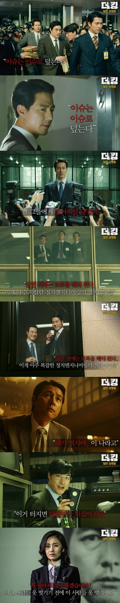 '더 킹'은 '변호인', .'광해, 왕이 된 남자'와 같이 현실을 겨냥한 촌철살인한 명대사로 관객들에게 통쾌함을 선사한다.