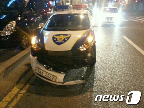 뉴스1 보도에 따르면 18일 오전 5시 12분께 부산 해운대구 중동의 한 도로를 달리던 권모씨가 운전하던 아반떼 승용차가 교통안전 지도를 위해 갓길에 정차한 경찰차 측면을 들이받고 그대로 달아났다.
