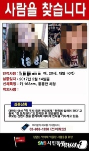 뉴스1에 따르면 서울 종로경찰서는 4일 한국에서 행방불명 신고된 대만 국적의 장모씨(19, 여)가 보이스피싱 범죄에 연루돼 경기북부지방경찰청에 붙잡힌 사실을 확인했다고 밝혔다. 장씨는 보이스피싱 조직에서 현금을 운반하는 운반책 역할을 한 혐의를 받고 있다.