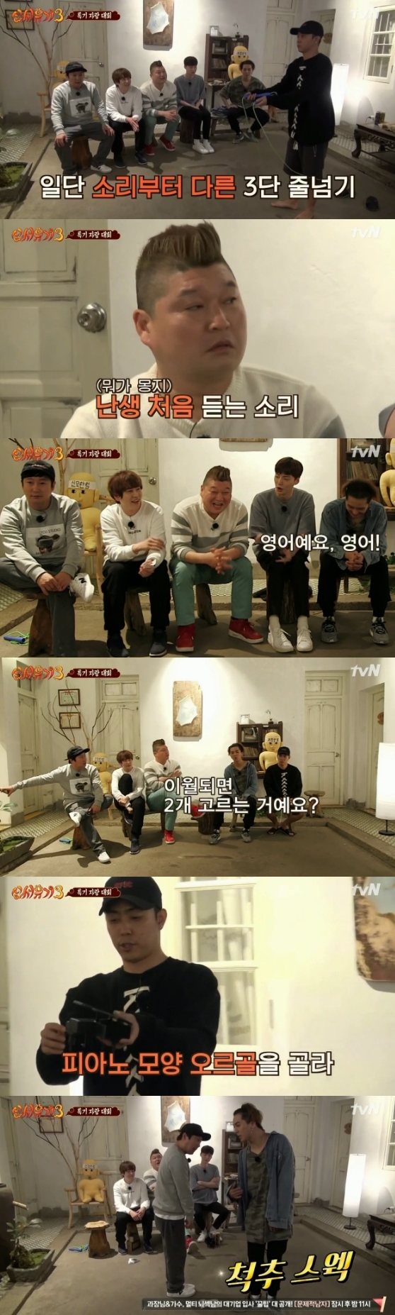 5일 오후 방송된 케이블채널 tvN 예능 프로그램 '신서유기 3'에서는 좀비 게임, 특기 자랑 대회가 펼쳐졌다.