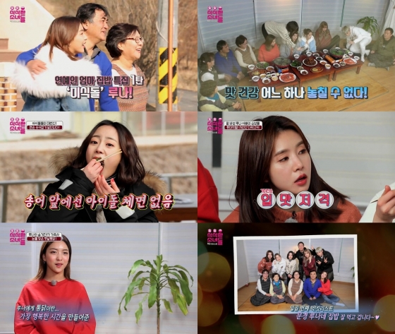 루나의 건강과 무결점 피부를 만들어 준 밥상에는 매콤 갈비찜, 더덕구이, 버섯만두절골 등이 올라 그야말로 음식의 향연이 펼쳐졌다. 박보람은 "밥 한 공기 더"를 외쳐 루나와 부모님을 뿌듯하게 만들었다.