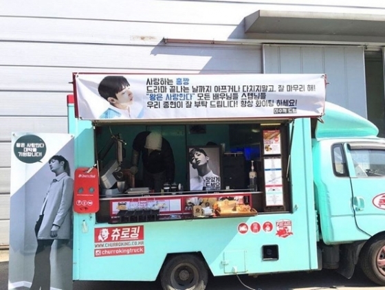 사진 속엔 이수혁이 홍종현에게 선물한 밥차의 사진이 담겨있다. 플래카드 안에는 "사랑하는 홍짱. 드라마 끝나는 날까지 아프거나 다치지 말고"라며 "우리 종현이 잘 부탁드립니다"란 애정 담긴 메시지가 눈길을 끌었다.