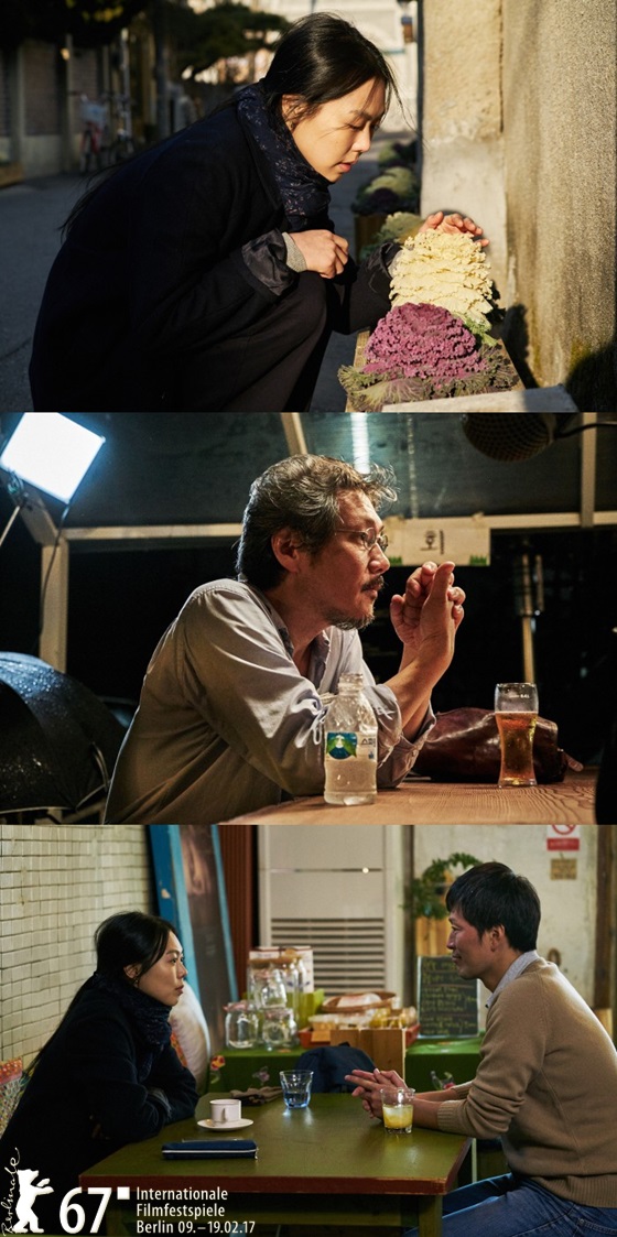 '밤의 해변에서 혼자'는 유부남 영화감독과 사랑에 빠져 곤경에 처한 여배우 영희(김민희 분)의 이야기다. 지난해 6월 홍상수 감독과 김민희의 불륜설이 터져나오기 전 완성한 작품이지만, 감독과 배우로서 작품을 함께하며 처음 만났으며, 불륜설에 휘말려 대중의 관심을 받고 있는 두 사람의 개인사를 떼어 놓고 보기 힘든 영화이기도 했다.