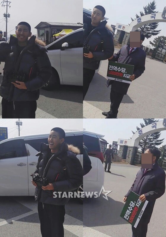 "여러분이 제대 하면 통장에 천만원이 꽂힌다"라고 공약을 홍보하던 사람들은 마침 이날 입대한 광희와 함께 사진을 찍고 싶었겠지만, 이날 입대하던 광희에게는 갑작스러운 상황이 당황스러워 보였다.