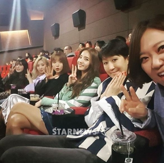 한채영은 13일 오후 자신의 SNS에 "우리 언니쓰 멤버들 다함께 예원이 영화 시사회나들이"라는 글과 함께 극장 안에 나란히 앉아 있는 멤버들의 모습이 담긴 사진을 공개했다.