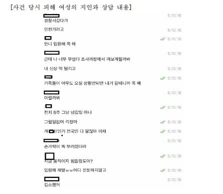 변호인 측은 이와 함께 사건 당시 고소인이 지인과 상담했던 내용이 담긴 메시지 대화 창을 공개했다.