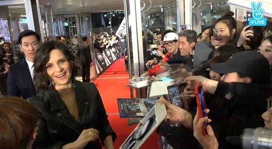 17일 오후 방송된 네이버 V앱 '공각기동대 : 고스트 인 더 쉘 내한 레드카펫'에서는 줄리엣 비노쉬가 등장해 팬들을 만나는 장면이 소개됐다.