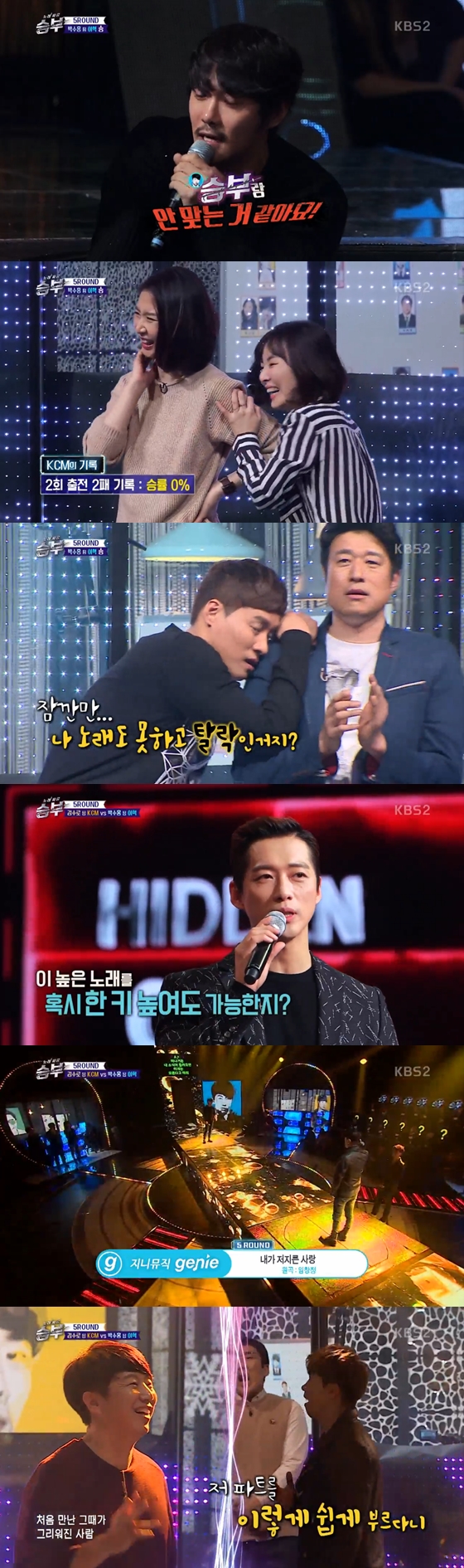 '노래싸움 승부'에서 KCM과 이혁의 정면승부가 벌어졌다. 안타깝게도 KCM은 2회 출연 연속 패배해 아쉬움을 남겼다.