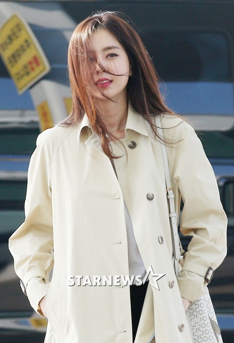 공항에 나타난 한채아는 흰티에 블랙팬츠, 그리고 운동화를 매치해 편안한 공항패션을 선보였다.