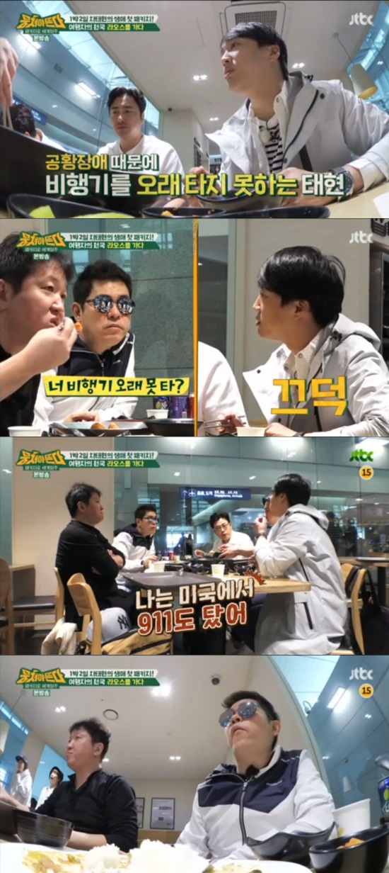 처음으로 패키지 여행을 떠나게 된 차태현. 그는 비행기 탑승에 앞서 멤버들과 함께 분식으로 아침 식사를 했다.