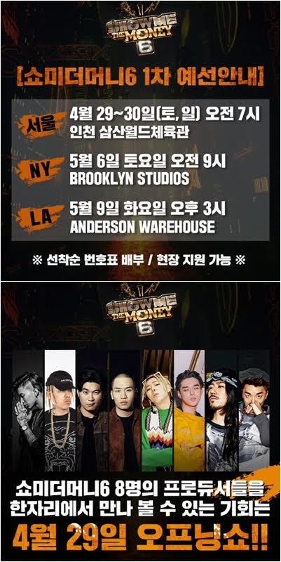또한, 이번 '쇼미더머니6' 미국 예선은 LA와 더불어 시즌 최초로 뉴욕에서도 진행된다. 방식은 한국 예선과 같으며 현지 시각으로 5월 6일에 뉴욕 BROOKLYN STUDIOS, 9일 LA ANDERSON WAREHOUSE 에서 치러질 예정이다.
