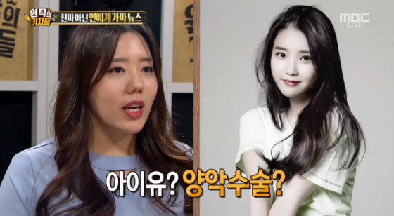 이날 방송에 출연한 한 기자는 아이유의 양악 수술과 관련한 잘못된 기사를 언급했다. 기자는 "아이유가 날렵한 턱선을 갖고 있는 동안 외모의 소유자"라고 소개하며 "모 양악 수술 병원에서 찍었던 과거 사진으로 인해 양악 수술을 했다는 루머에 휩싸이기도 했다"고 소개했다.
