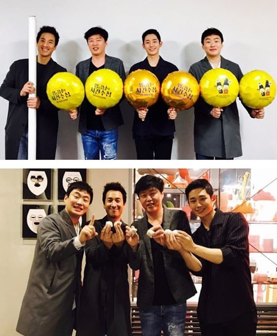 이에 영화에 출연한 이선균 안재홍 김희원 정해인은 환한 표정으로 100만 돌파 인증샷을 공개했다.