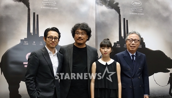봉준호 감독은 이번 '옥자'를 통해 글로벌 캐스트와 함께 했다. '설국열차'에서 이미 호흡을 맞췄던 틸다 스윈튼을 비롯해 제이크 질렌할, 폴 다노, 릴리 콜린스 등 할리우드 톱스타들이 함께했고, 주인공 미자 역의 안서현을 비롯해 4번째 함께하는 변희봉도 열연을 펼쳤다. 봉준호 감독에게 그들에 대한 이야기를 물었다.