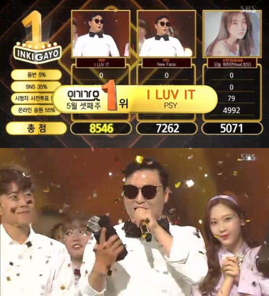 이로써 싸이는 지난 10일 정규 8집 발매 후 처음으로 '인기가요' 정상에 오르는 기쁨을 누렸다. 컴백 후 음악 프로그램 1위는 지난 18일 Mnet '엠 카운트다운'에 이어 이번이 두 번째다.