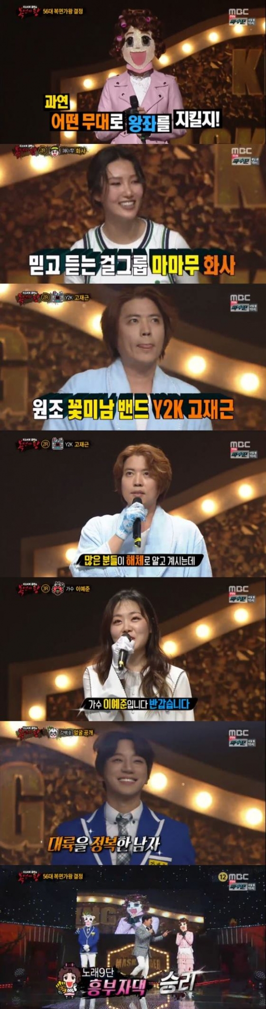 복면을 벗은 에어로빅 소녀는 걸 그룹 마마무의 화사였다. 화사는 솔라와 휘인에 이어 '복면가왕'에 출연한 마마무의 세 번째 멤버가 됐다. 화사는 "떨어지신 분들도 웃으면서 간다고 하는 마음이 이해가 간다. 너무 후련하고 좋게 봐주셔서 미련 없이 재미있는 무대였다"고 출연 소감을 밝혔다.
