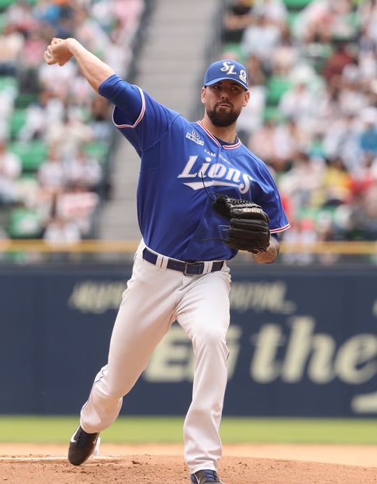 삼성이 기대했던 모습은 아니다. 지난해 메이저리그에서 평균 147km의 속구를 던졌던 레나도지만, KBO 리그에서는 140km 전후다. 제구도 좋지 못하다. 9이닝당 7.15개의 볼넷을 내주고 있다.
