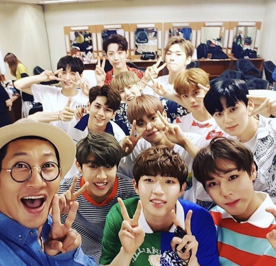 가수 김창렬이 신예 아이돌그룹 워너원과 함께 찍은 인증샷을 공개했다.