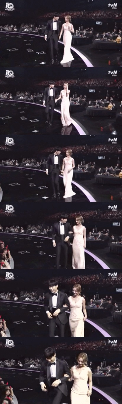 두 사람이 공개 열애를 시작한 가운데, 과거 류준열과 혜리가 함께 tvN 10주년 시상식에 보여준 모습이 다시 화제가 되고 있다.