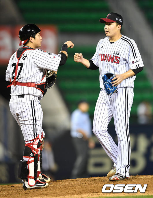 이날 임찬규에게도 위기도 있었다. 1회에만 3안타를 맞으며 만루 기회를 내줬다. 1사 만루에서 모창민에게 중견수 희생플라이를 허용하며 선제 실점했다. 유강남은 "오랜만에 등판이라 (임)찬규가 1회부터 흔들렸다. 긴장하고 흥분되다 보니 그런 것 같았다. 이야기를 많이 하며 진정시켰고, 이후에는 페이스를 찾았다"고 되돌아봤다.