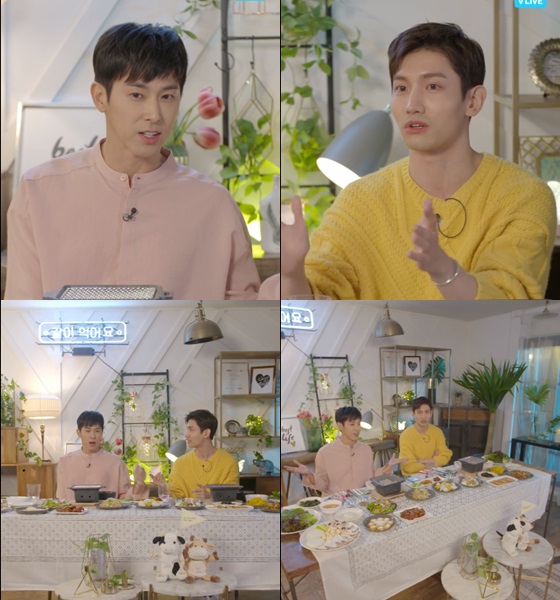 동방신기는 28일 오후 네이버 V라이브 'TVXQ! X EATING SHOW, 동방신기의 같이먹어요!'로 팬들을 만났다.