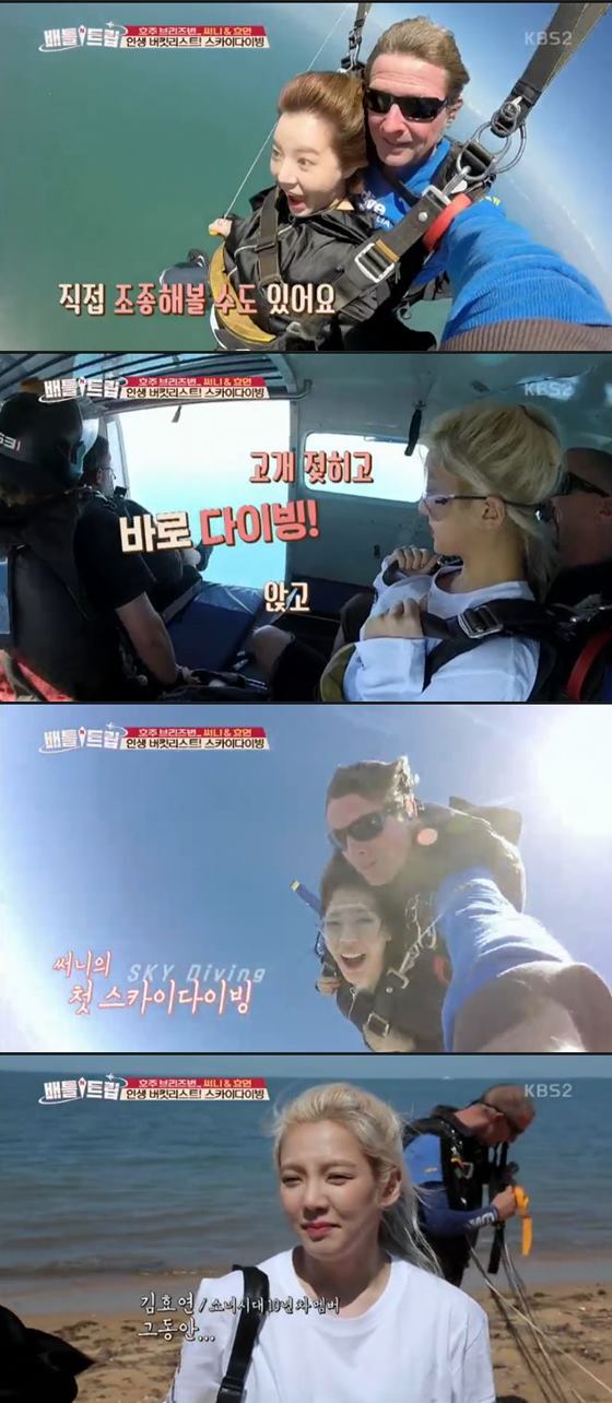 7일 오후 방송된 KBS 2TV 예능프로그램 '배틀트립'에서는 써니와 효연의 호주 브리즈번 여행기가 방송됐다.