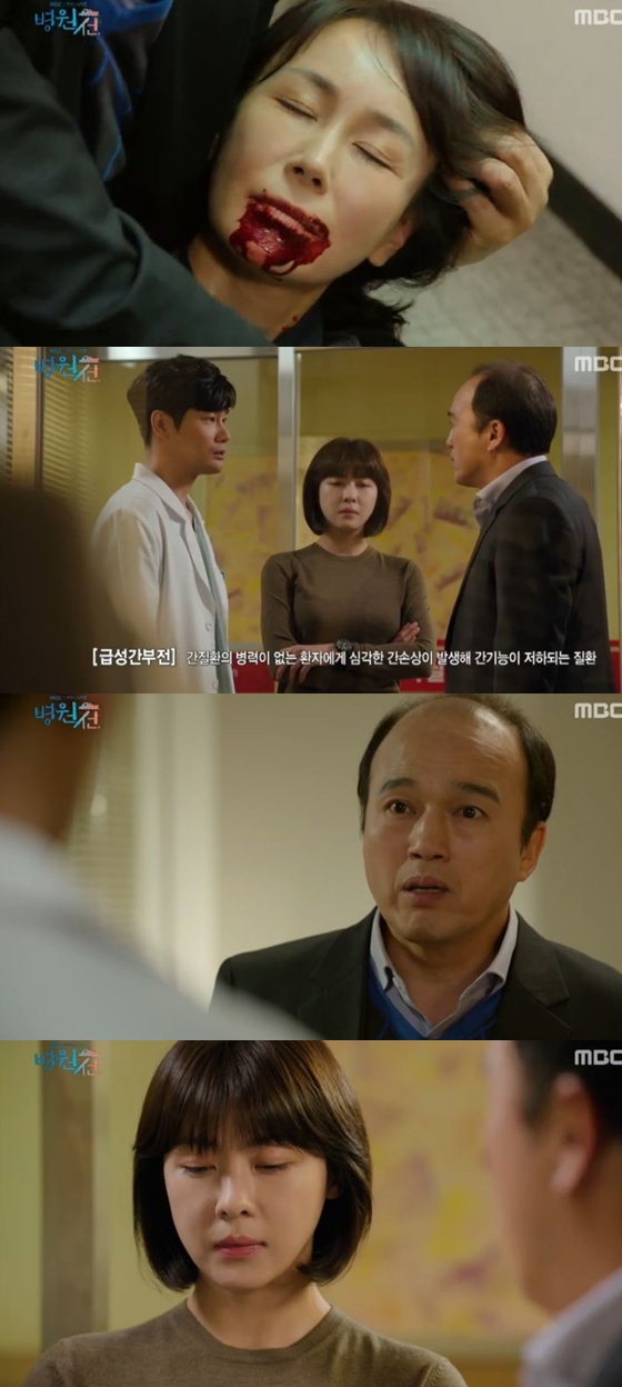 '병원선'에서 김광규의 아내가 급성 간부전증을 진단받았다.